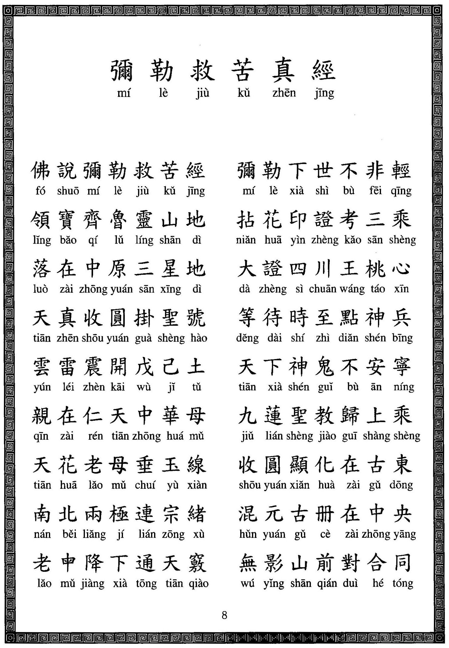 呂祖曰:世道頽敗 日趨於污流 天下陷溺 欲援之以道 眾皆知也 且今三期末刼 災煞頻降 非天道難救殘靈 共出於水火 道含天地 貫遍四海 巍巍大哉 規嚴則慎 豈得含忽否 皆因修道之士 未能全心致志 竭力盡誠 聞而不進 知而不行 有何益哉